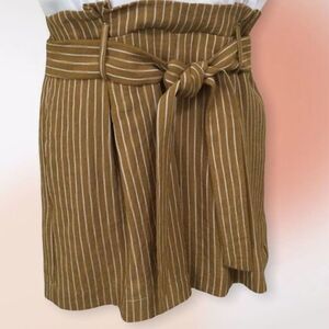 Shorts are a Vertical Stripe in Khaki and White with Matching Belt and Belt Loops.