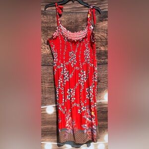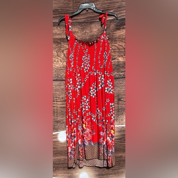 Red beach dress with floral design. Very comfortable, extremely soft fabric