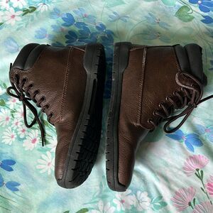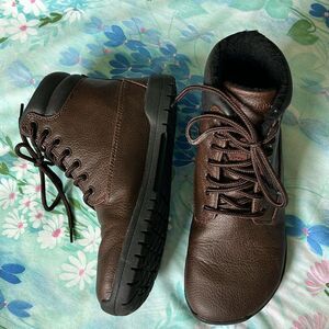 Excellent condition wide toe box. Pebbled dark brown vegan leather fleece like on the inside. I’ve included the company size chart to help determine sizing. This size in this color is sold out online as of my posting (7/7/2025).