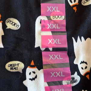 Feeling Festive Halloween Jet Black Leggings with Ghosts and Silver Shimmery Talk Bubbles, Women’s Size XXL ~ New, never worn with sticker tag on leg.