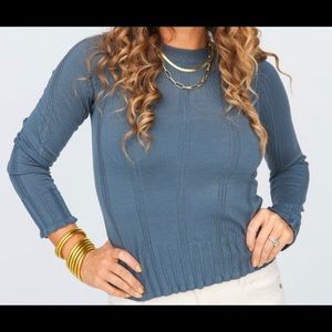 This lightweight sweater is very stretchy and meant to be fitted. Perfect for layering under a kimono or dressed up with some cute jewelry.