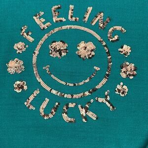 Stay cozy and stylish with this Vero Moda green sweater with the cutest phrase 'Feeling Lucky'. Perfect for St. Patrick's Day! Purchased from Fleurty Girl on Magazine Street in New Orleans and worn once!