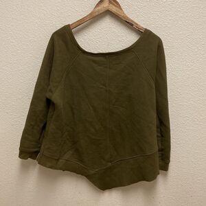 Olive green wide neck pullover with asymmetrical hem from Feel the Piece by Terre Jacobs. Size XS/Small.