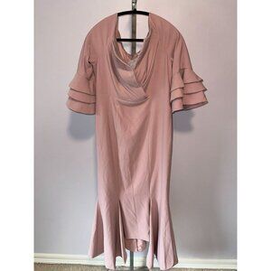 Fehaute Pink Ruffled Bell Sleeves V Neck Mermaid Maxi Dress Wedding Size 8 NWT