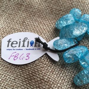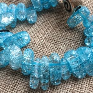 Brand new and charming! Turquoise crackle glass beads with 2 silver swirl embellishments. Each bead unique. Handmade in the USA. Made in America.