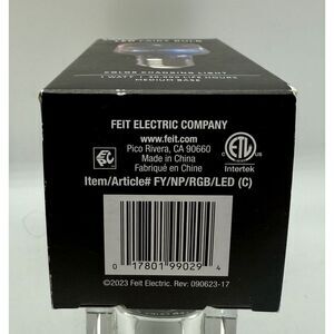 The Feit Electric FY/NP/RGB/LED E26 Medium Clear 120V 1W Specialty LED Bulb is a unique lighting solution designed for speciality applications. This LED bulb features RGB color capabilities, allowing for a range of color options. With a bulb wattage of 1W and a voltage of 120V, it is energy-efficient and suitable for a standard E26 socket. The clear finish and specialty bulb shape make it a versatile choice for adding ambiance or accent lighting in various settings, such as homes or commercial spaces. Manufactured by FEIT ELECTRIC CO, this bulb combines modern LED technology with customizable lighting options.