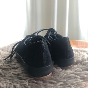 FEIT handsewn low black leather suede classic. Cute stitching details.