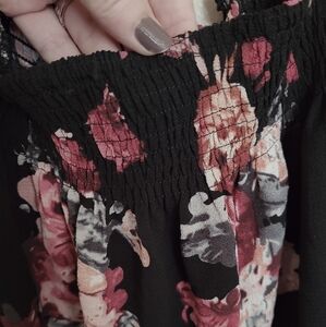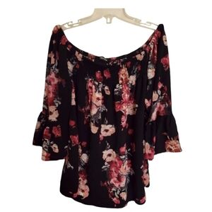 Feitong Black Pink Floral Off The Shoulder Smocked Blouse Size Large
