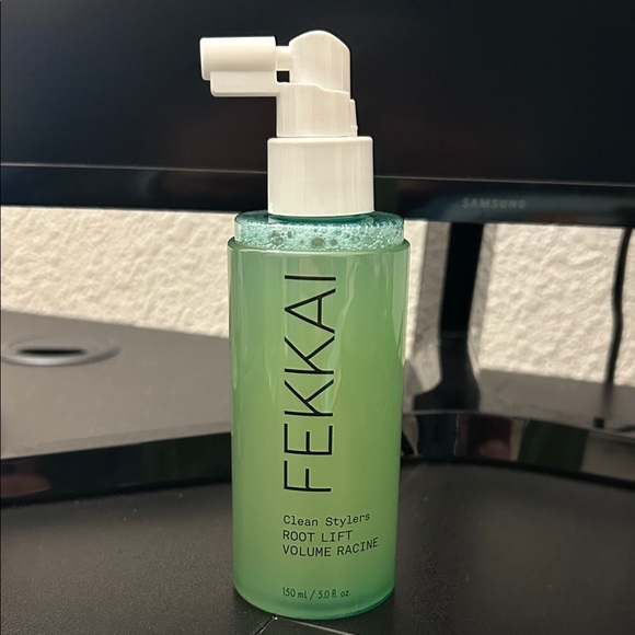 Elevate your hair with 's Root Lift Spray. This green formula adds volume and lift for a fuller look.