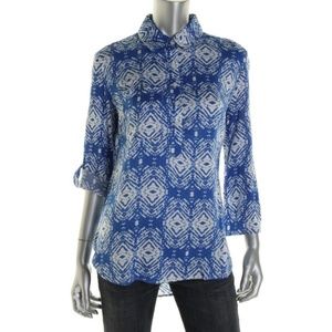 Felicite Blue/White Printed Hi-Lo SZ L Blouse