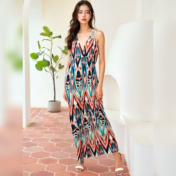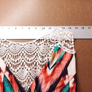 Felicity & Coco Jersey Maxi Dress M Multi Crochet Back Empire Waist Flowy Boho