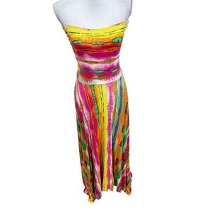 Felicity & Coco Pink Yellow Strapless Sundress Resort Wear back cut out sz small