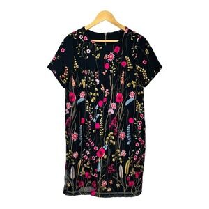 Felicity Coco Rose Embroidered Shift Dress Black Colorful Women Size Medium
