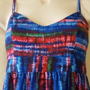 Slim straps suspend a vacation-worthy dress that's designed with a fitted bodice and gathered Empire waist that begins the rippling, figure-elongating skirt.