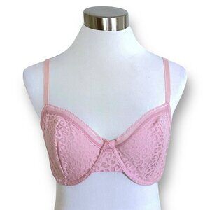 Felina 38D Gianna Bra Pink Animal Print Burnout Lace Semi Demi Underwire 110017