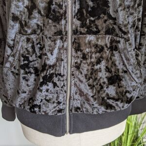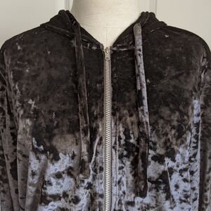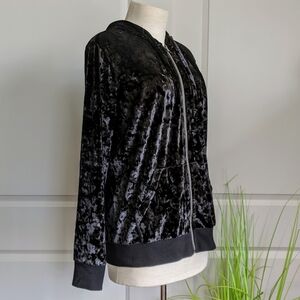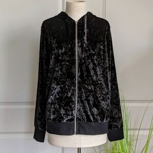 Felina Hoodie Crushed Velvet Zip Front Hooded Front Pouch Pockets Black M NWT