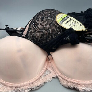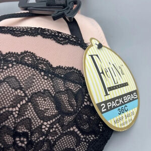Felina Lace w/ Mesh Inset and Micro Light Lift Pushup Bra Pack of 2, 34B or 36B or 36C