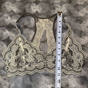 Felina Womens Lace Bralette Scalloped Edge Two Tone Gray Cream Size Small