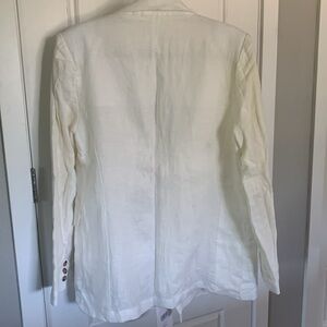 New with tags, beautiful white linen Roma blazer by Felix. Lining in sleeves is pale yellow stripe.