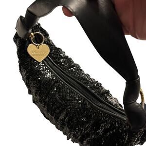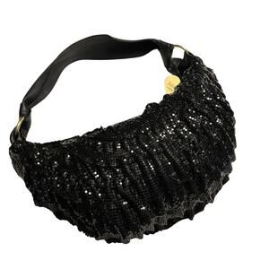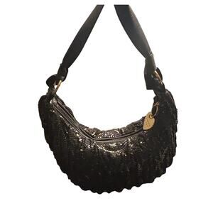 Half Moon Layered Chain Mail Shoulder Bag by Felix Rey. EUC. No flaws or stains. This eye-catching piece features a shimmering layered metal mesh exterior and a full zip closure for secure storage. The interior reveals a beautiful satin floral print lining with multiple pockets for organization. A signature heart logo charm adds a sweet finishing touch. Timeless and unique, this bag blends glamour and function, making it a standout addition to any collection.