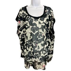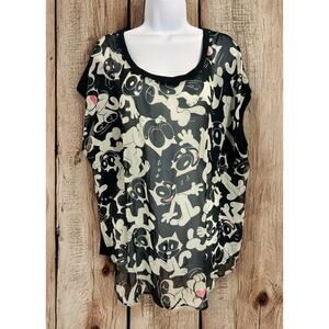 Felix The Cat Black White Sleeveless Blouse Sz 2X 18/20 2 Torrid Semi Sheer Top