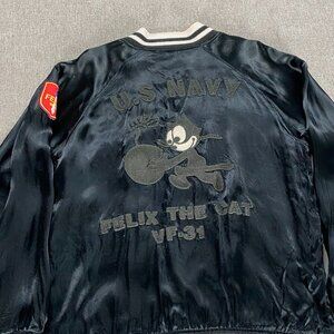 Felix the Cat US NAVY VF-31 Bomber Jacket Men's Medium Black Military Casual