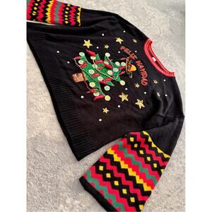 Feliz Navidad Black Sweater Top Sequin Knit Christmas Mexican Holiday XXL 2X