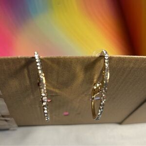 Diamond accents on gold hoops