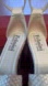 Felmini Python Leather Platform Clogs with Wooden Heel and ankle straps. Step into style with these white and brown platform clogs, featuring a distinctive chunky, wooden heel and a chic perforated Python leather upper. The open-tow design and studded trim all around add a touch of retro flair! They are perfect for both casual and dressy occasions. Experience comfort and elegance with every step. The left shoe has some minor scratches on the back.
