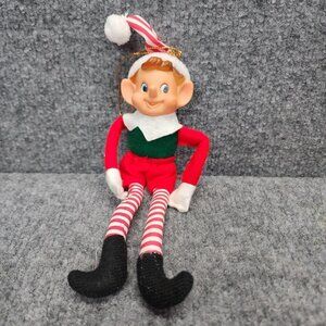 Felt Christmas ELF Hanging Ornament Pixie Knee Shelf Sitter Red White Stripes