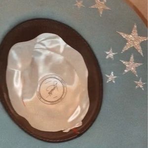 Sparkle/ stars powder blue felt hat, size 7/ 22”. Silver sparkle star appliqués.