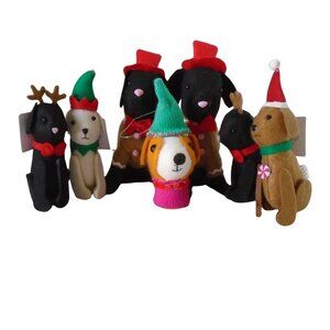 Felt Plush Dog Christmas Tree Ornaments and Decorations Assorted Sizes 7 Pieces