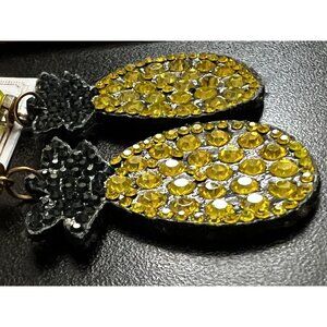 Felt & Rhinestone Yellow & Black PINEAPPLE Drop Dangle Earrings