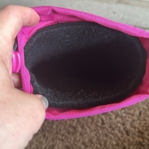 Completely water proof galoshes with felt liner for cold weather. Made of what feels like rubber. Elastic closure at the top. Women’s size 5. Excellent condition! These are fairly heavy.