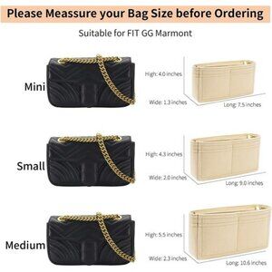 🧿💖Dimensions: Mini: 7.5(L)x1.3(W)x4(H) inches; Small: 9(L)x2(W)x4.3(H) inches; Medium: 10.6(L)x2.3(W)x5.5(H) inches . Please use a tape measure to measure the inner length, width and height of your Shoulder bags, then compare the size chart and purchase. Any question, please contact us.