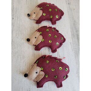 Felt red porcupine plush sequin ornament Xmas set