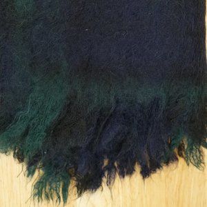 Clean, hand made. Dark navy blue and green. Measures 18" by 66" plus the fringe. No smoke or pet odors. Soft.