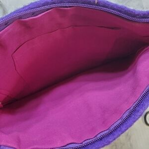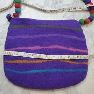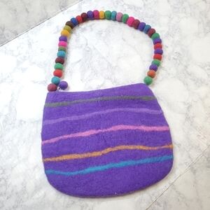 Felted Handbag Purple Colorful Stripes Pompom Strap Retro Hippie 70s Kidcore