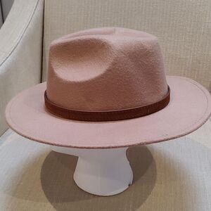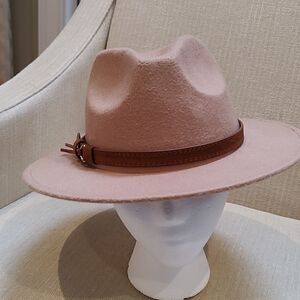 Felted Tan Fedora Hat with a Brown Fringed Belt Hatband