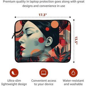 🧿Dimensions: 17.3" x 13.5"x 1.25”. Abstract Laptop Sleeves is made of highly elastic thickened neoprene material, it obstructs water effectively. Don't worry about splashing water or rain, washable when your laptop case becomes dirty.