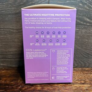 Pretty Panty is a fashionable panty and pad all in one that offers eight hours of leak-free protection. One box contains 7 panties, for 7 leak free and anxiety free nights. Go 1 size up on first order (recommended).