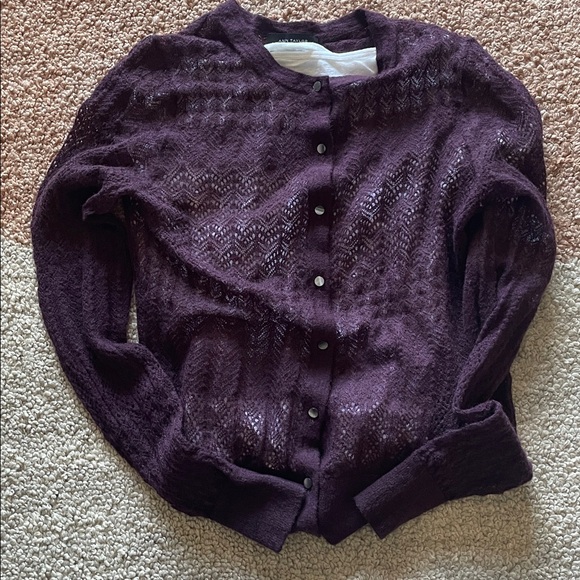 Feminine Ann Taylor XS Fine Weave Aubergine Cardigan 43% Mohair Vintage 90s