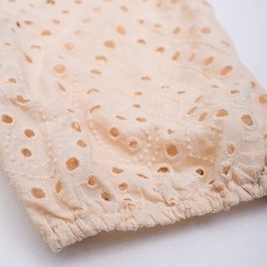 Feminine Eyelet Puff Sleeves Blouse Cute Girly Coquette Cream Medium