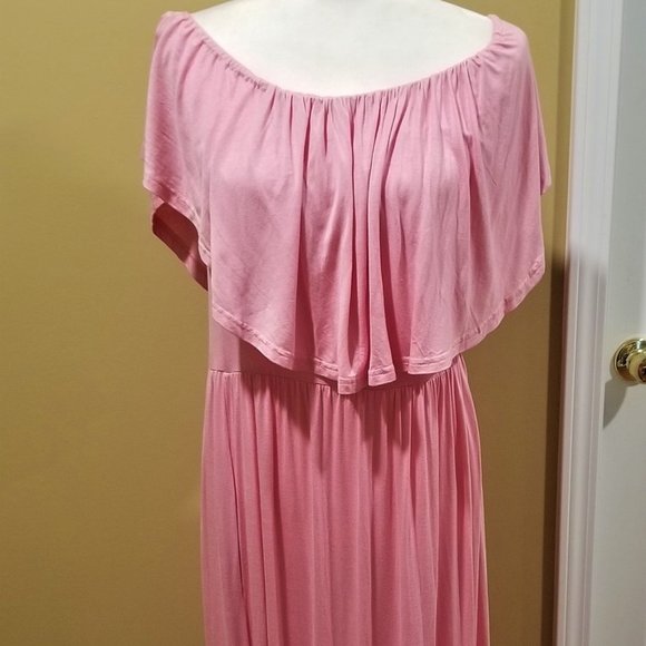Feminine Soft Pink Off The Shoulder Maxi Dress SZ Large