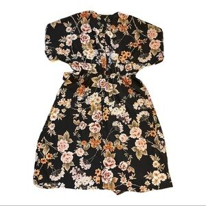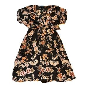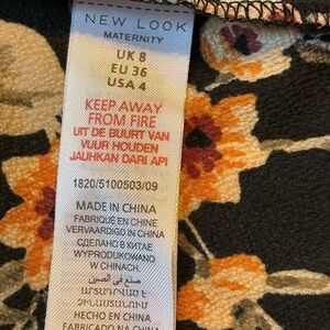 New Look Faux wrap V-neck floral midi maternity dress. Black background, white, pink, wine, peach and rust floral. Empire waist, US size is 4. Chest 30-32”. Good preowned condition.