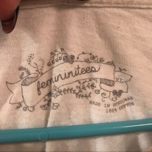 White tee embroidered with "Think Outside My Box." 100% preshrunk cotton. In good condition, some light pilling around the sleeves. Purchased from the Outrage (10/10 shop, would recommend).