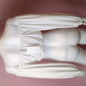 New with tags. Refer to photos for measurements. Ships in 1-2 business days. Femme Luxe brand white long sleeve super cropped top with tie neck detail.