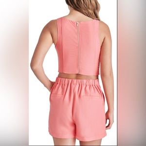 Crop tank with square neck and zip up back. Pairs perfectly with our Eni shorts for an upgraded spring look.