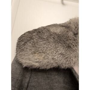 Femme by Michele R 100% Fur Rabbit Trim Double-Breasted Peacoat Gray Lined Cozy