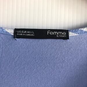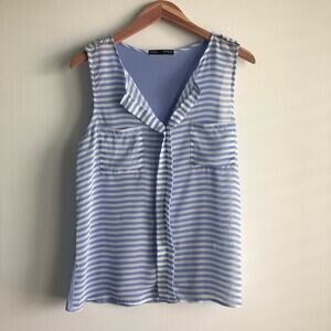 Femme by Tresics tank top striped Button tab detail on shoulder Solid back panel Size: Medium US M Color: blue and white